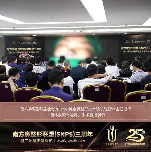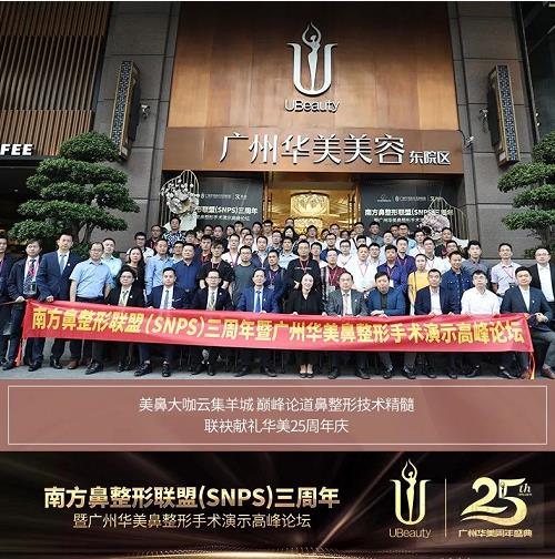 2019年11月2日,南方鼻整形联盟(SNPS)三周年暨广州华美鼻整形手术演示高峰论坛在广州华美医疗美容医院隆重举行。此次论坛由南方鼻整形联盟(SNPS)牵头主办,广州华美医疗美容医院全力承办,上海索康医用材料有限公司共同协办成立,助力广州华美25周年庆。在11月的羊城演绎了一场学术与艺术交融、破旧与立新更迭的盛会,掀起了全新视角的鼻整形美学风潮。